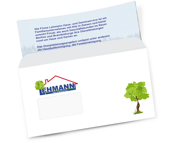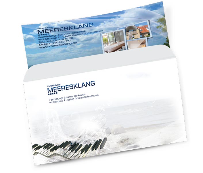 Wir gestalten Ihren Briefumschlag mit passenden Visitenkarten, Briefbogen, professionelle Gestaltung Ihrer Drucksachen.
