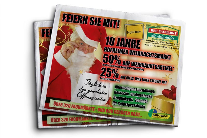 Weihnachtskarten, Zeitungsanzeigen, Weihnachtsgrüße, weihnachtliche Briefumschläge, Werbemittelgestaltung usw. geschäftlich und privat individuell vom Designer gestaltet.