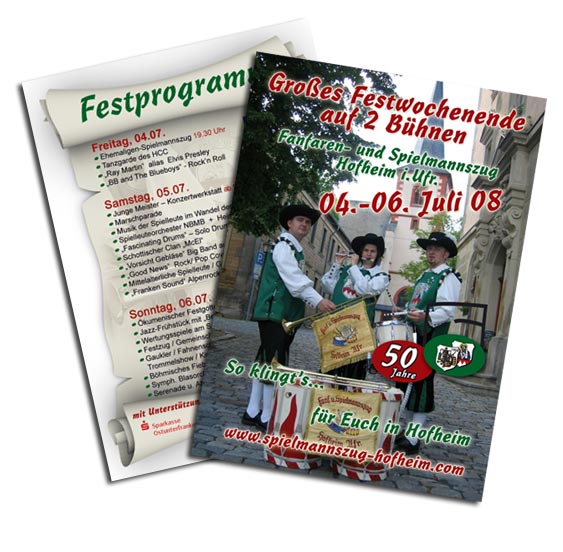Flyer Design Festprogramm ![]() ![]() ![]() ![]() ![]() Erstellung der DIN A4 Flyer. Info und Festprogramm |